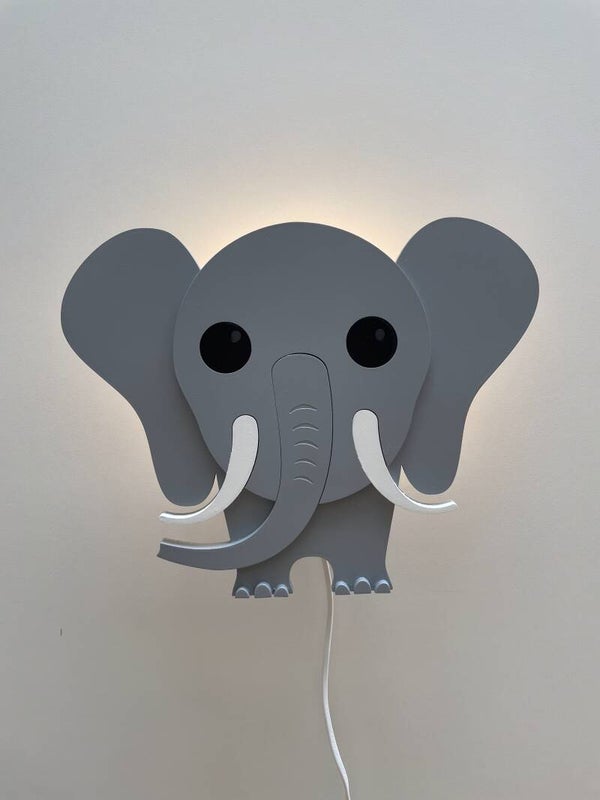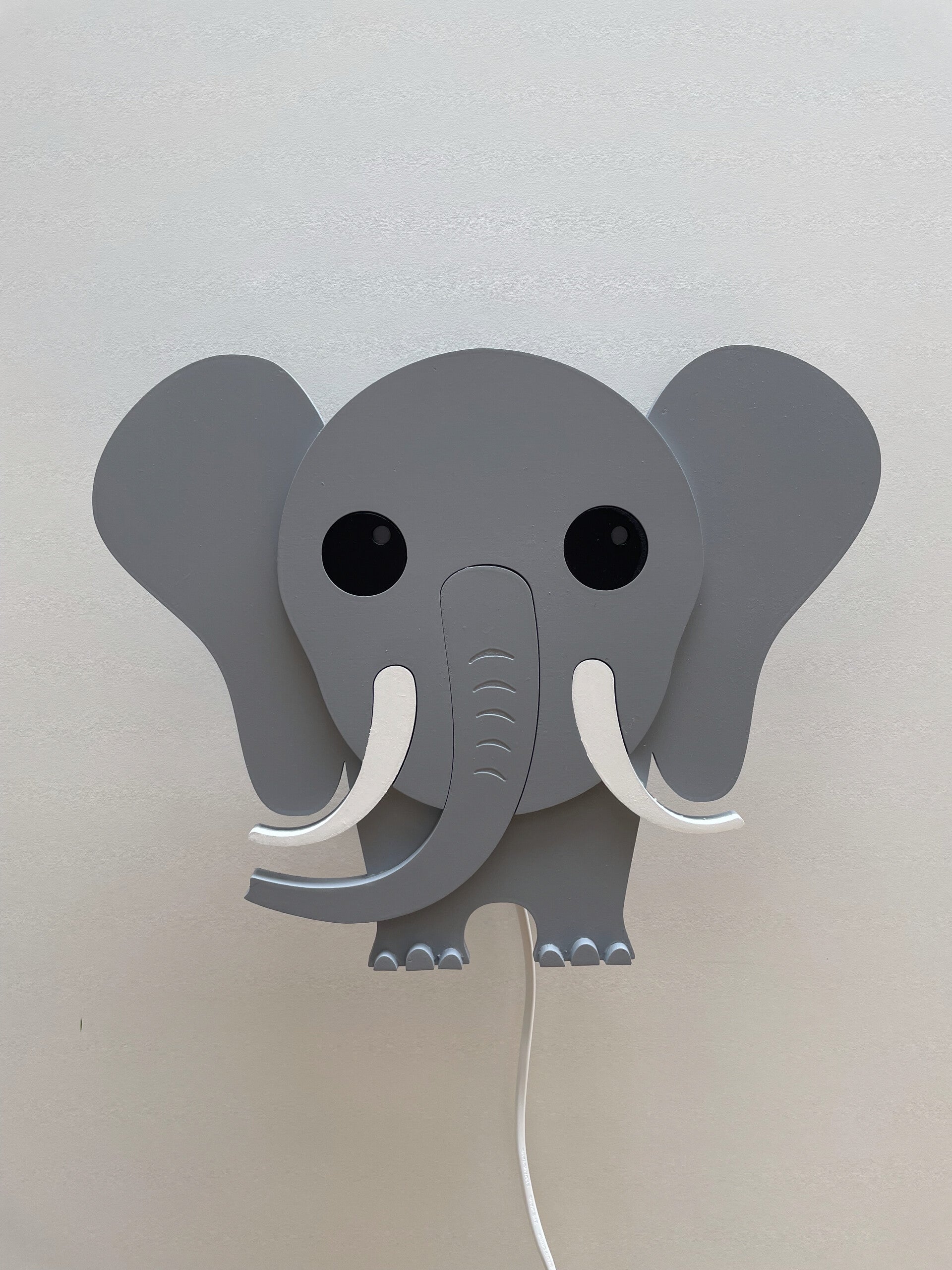 Als je de lamp laat branden in het donker, lijkt het alsof de olifant tot leven komt.