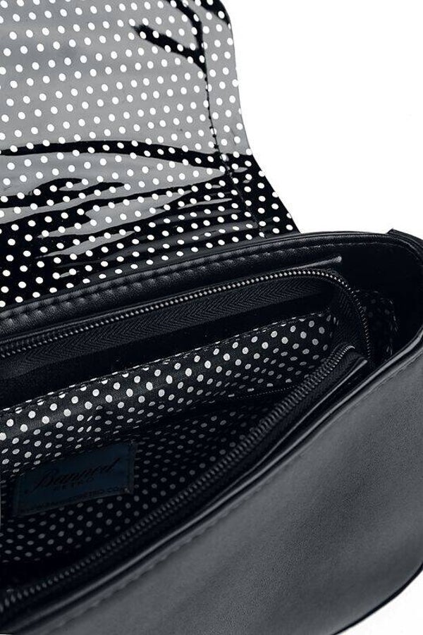 Dit tasje ademt rockabilly! Instant verliefd op de de golvende rand, en het gekleurde strikje, dat een subtiele verwijzing geeft naar de door ons zo geliefde rockabilly kersjes. Plaats daar een rood strikje bovenop, en je hebt de ultieme pin-up handtas! Ze heeft een extra ritsvak op de achterzijde en aan de binnenkant, en ook 2 kleine steekvakjes. Met de verstelbare schouderband, gooi je haar nonchalant over je schouder. Sweet Marilou, I'm so in love with you!