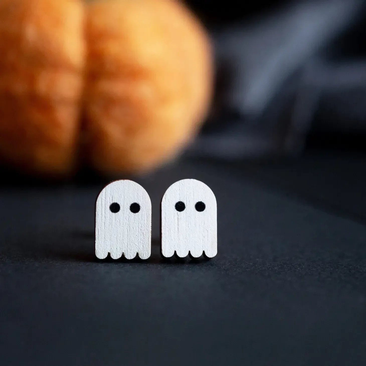 Superleuke houten spook-oorbelletjes, gemaakt van duurzaam geproduceerd berkenmultiplex en roestvrijstalen stekertjes – perfect voor gevoelige oren!