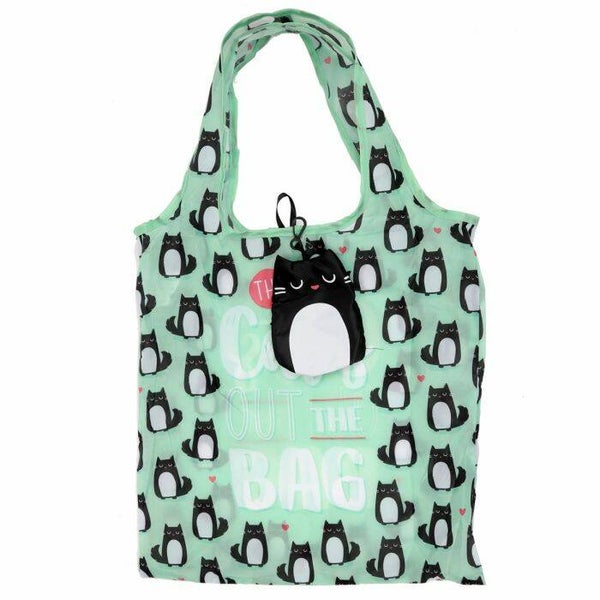 Neem dan vanaf nu altijd dit opvouwbare tasje mee. Met een leuke print van Feline Fine kat, handig om op te bergen.