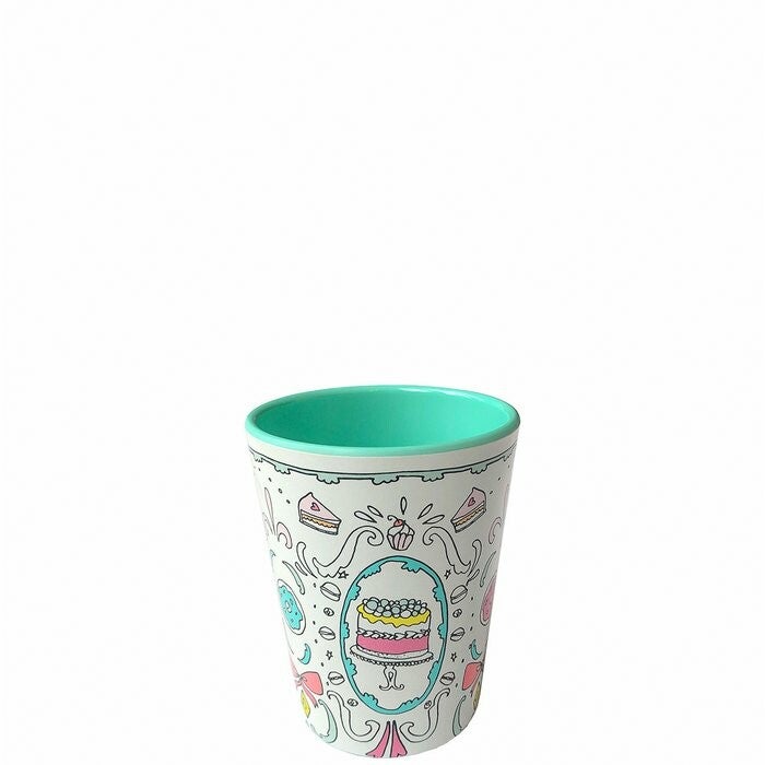 Het melamine is licht van gewicht, niet breekbaar en gemakkelijk te stapelen. De dessins bestaan uit verschillende frisse heldere kleuren gemixt met pasteltinten, glitters en vleugje glamour. Op het servies vind je de herkenbare illustraties van Jill. Het servies is ideaal om te ontbijten of lunchen, drink bijvoorbeeld je favoriete sap uit deze vrolijke beker.