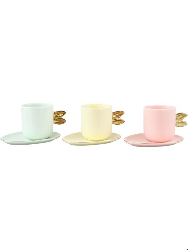 • Niet vaatwasmachinebestendig: Door hun gouden details zijn de kopjes en de bijbehorende schoteltjes helaas niet vaatwasmachinebestendig en moeten ze met de hand worden gewassen.