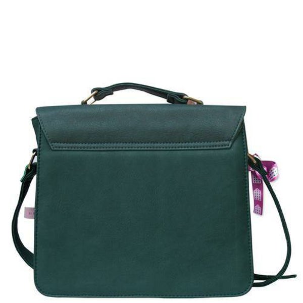Op de voorkant staat een afbeelding van een stadsplan met daarop een gouden sterrenpatch met bedrukt lint. De handtas heeft ook een groot voorvak met fietsopdruk, geborstelde gouden sluitingen en een paars lintje maakt het geheel helemaal af.