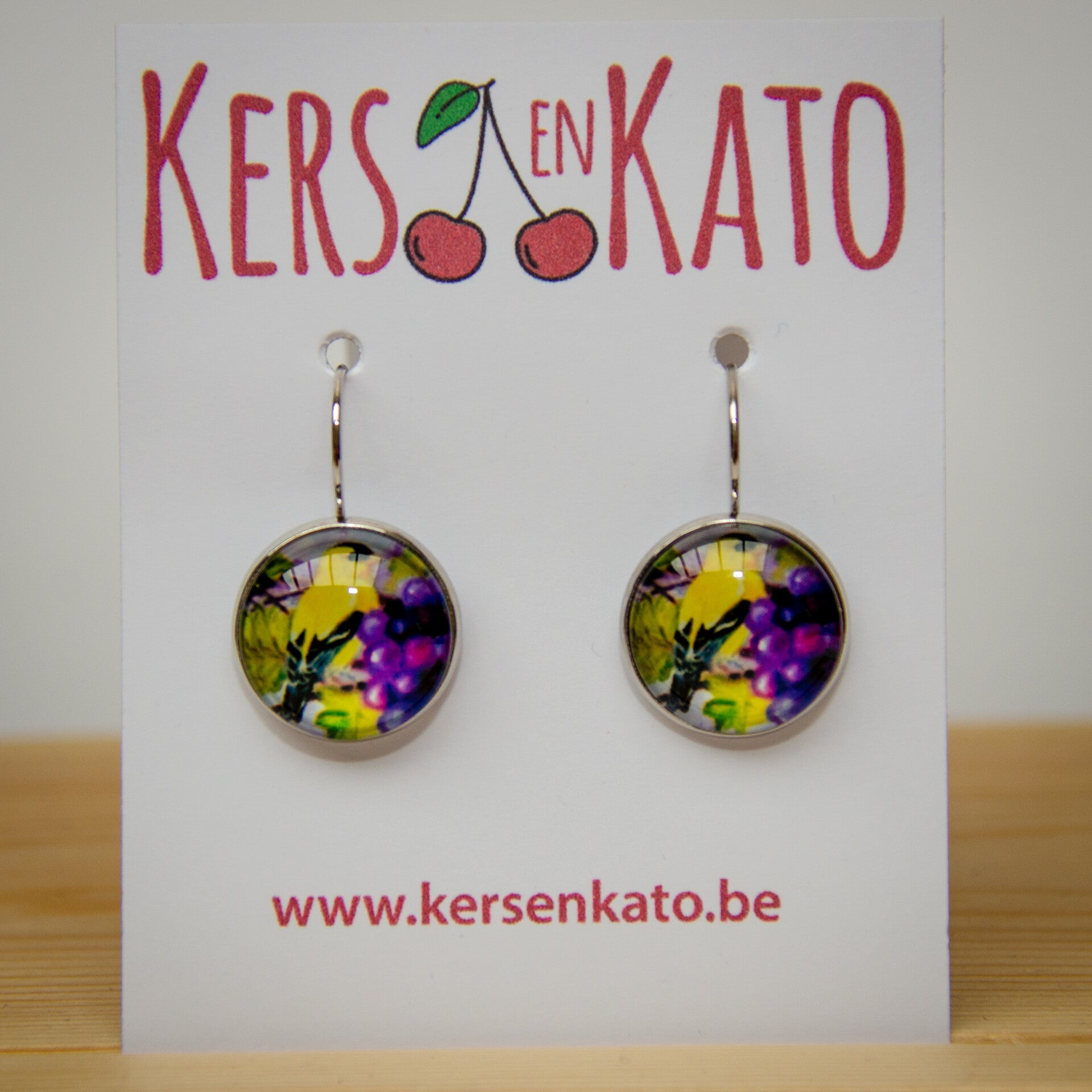 Steel dan de show met deze originele metalen klap oorbellen met een kleurrijke en vrolijke cabochon.