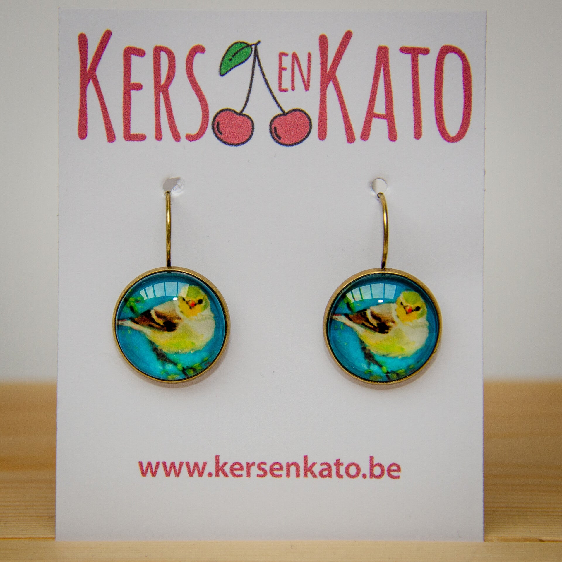 Steel dan de show met deze originele metalen klap oorbellen met een kleurrijke en vrolijke cabochon.