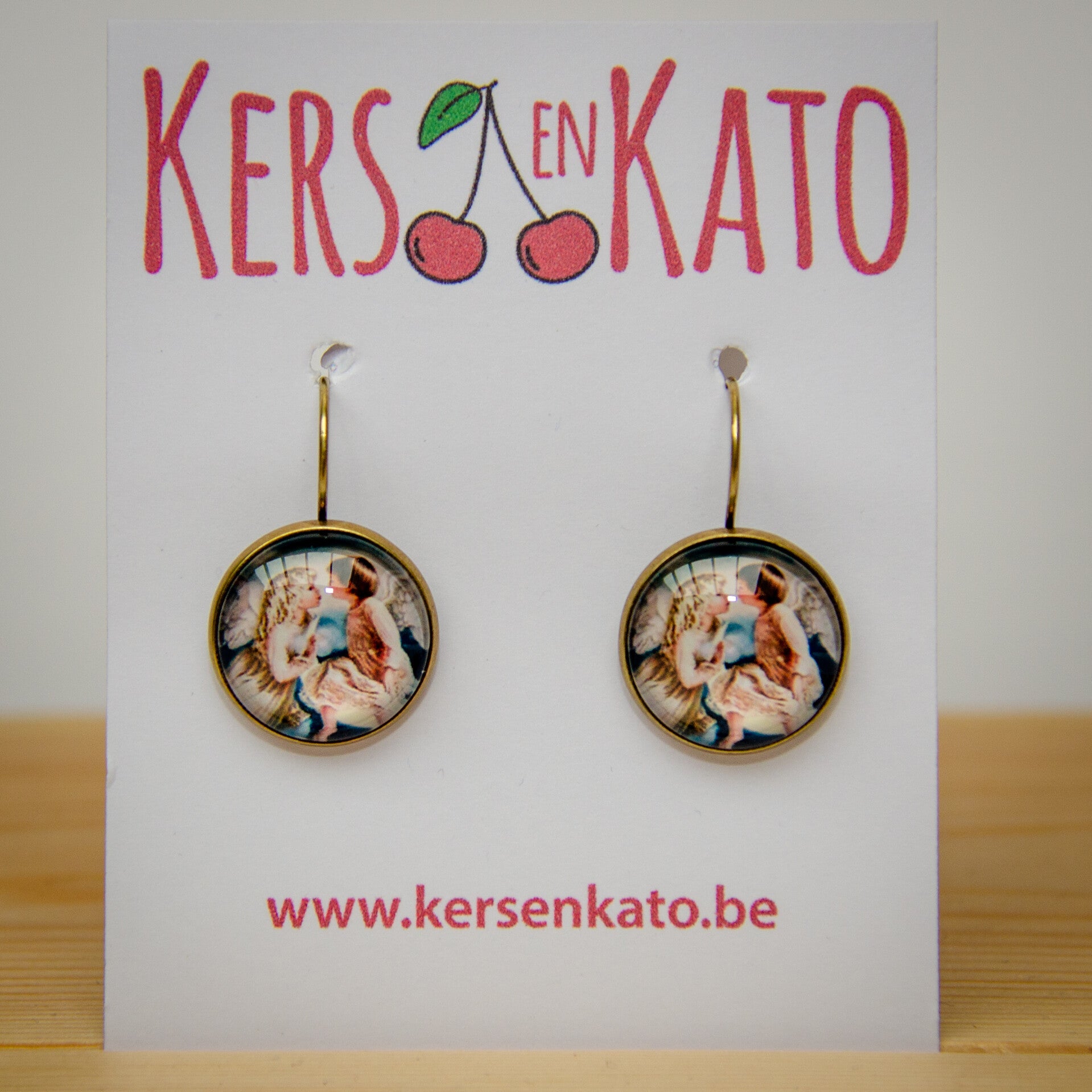 Steel dan de show met deze originele metalen klap oorbellen met een kleurrijke en vrolijke cabochon.