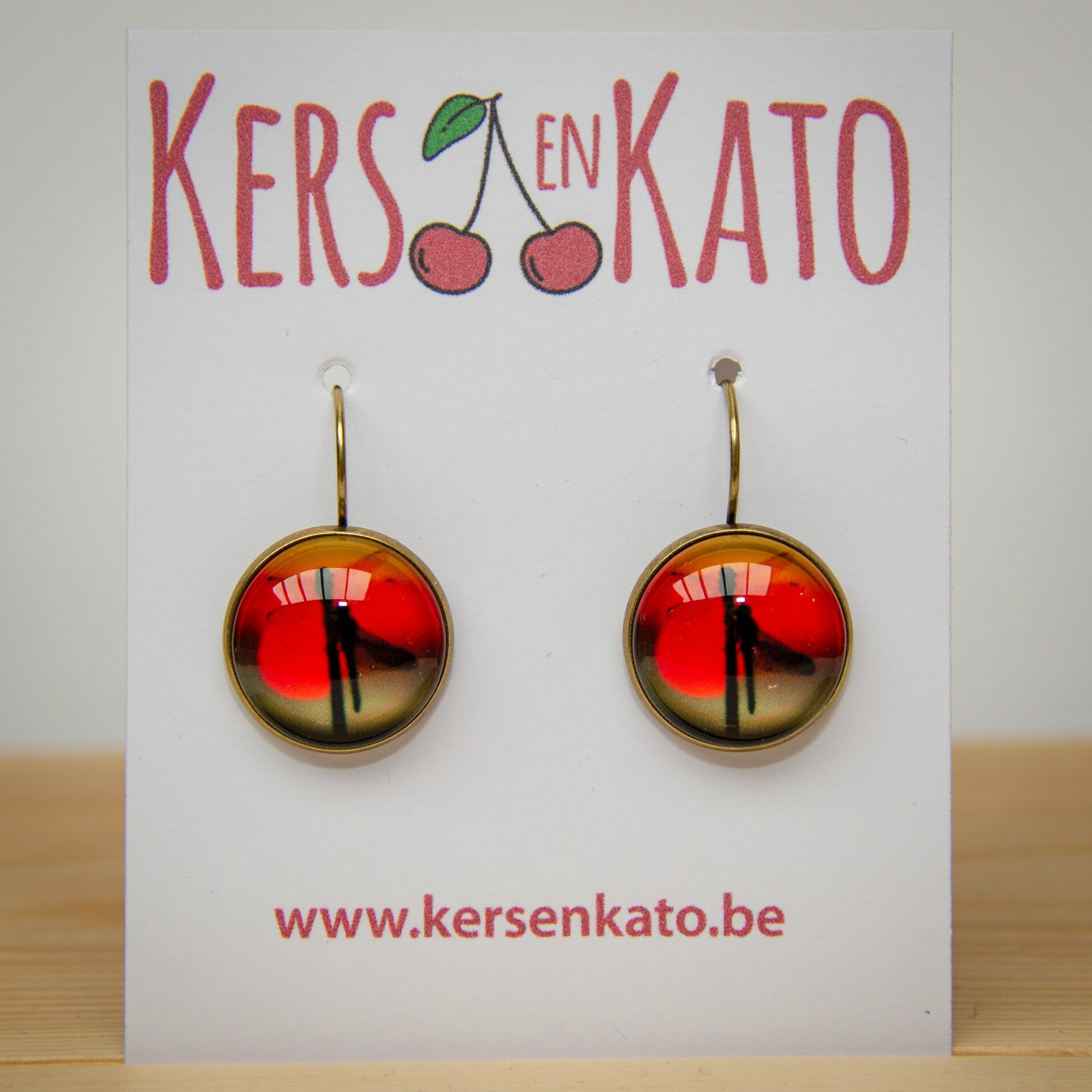 Steel dan de show met deze originele metalen klap oorbellen met een kleurrijke en vrolijke cabochon.