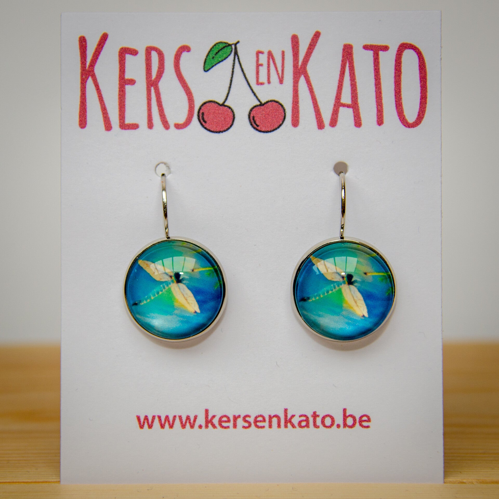 Steel dan de show met deze originele metalen klap oorbellen met een kleurrijke en vrolijke cabochon.