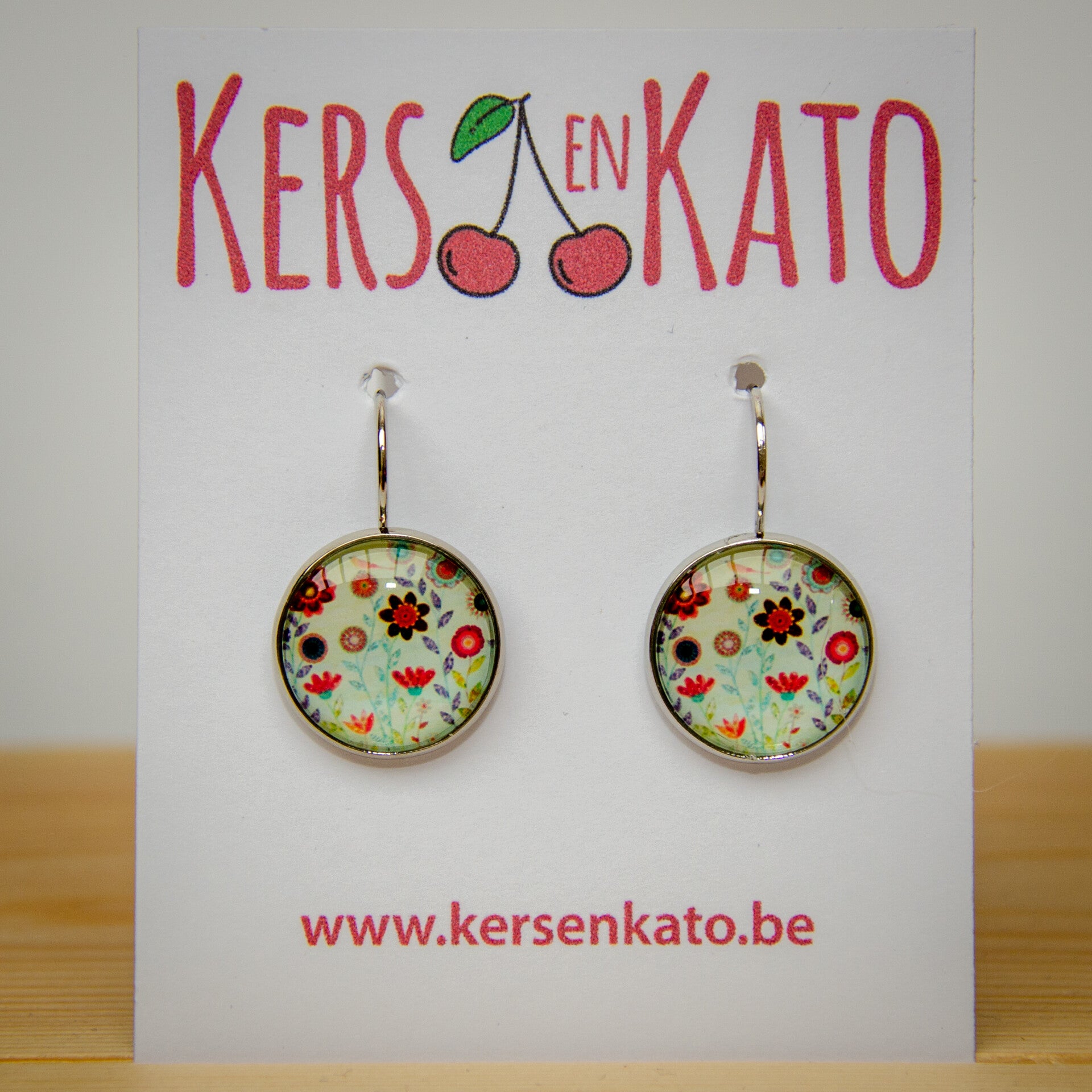 Steel dan de show met deze originele metalen klap oorbellen met een kleurrijke en vrolijke cabochon.