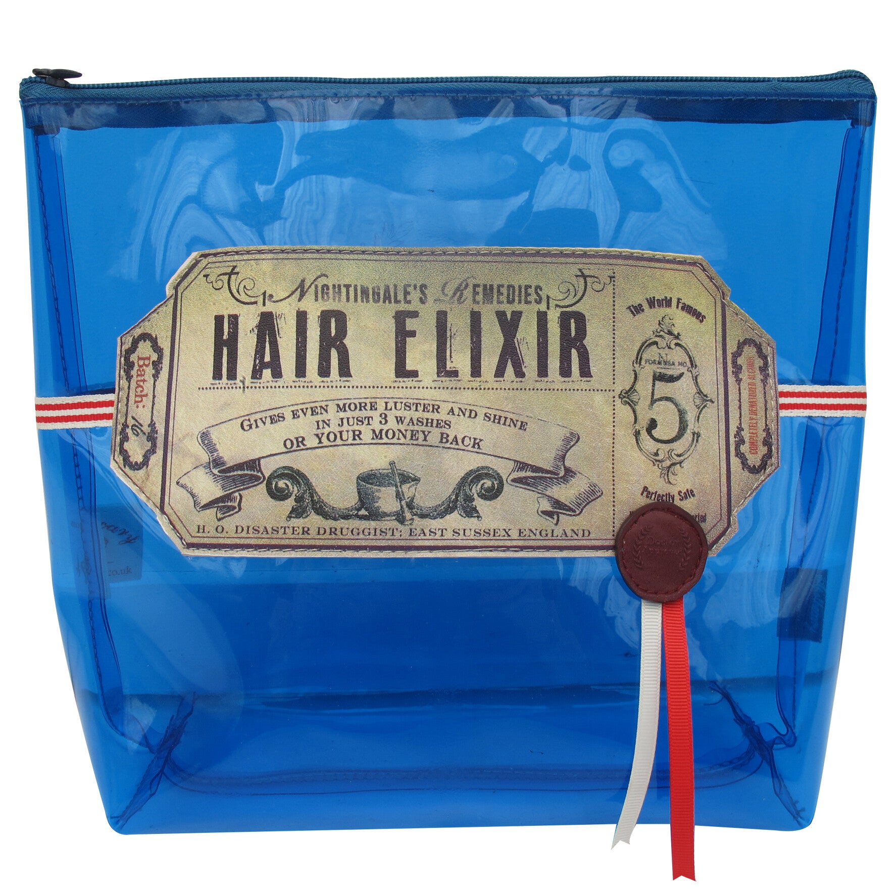 Originele toilettas gemaakt van kobaltblauw vinyl om de tas het uitzicht van een medicijnfles van een apotheker te geven.