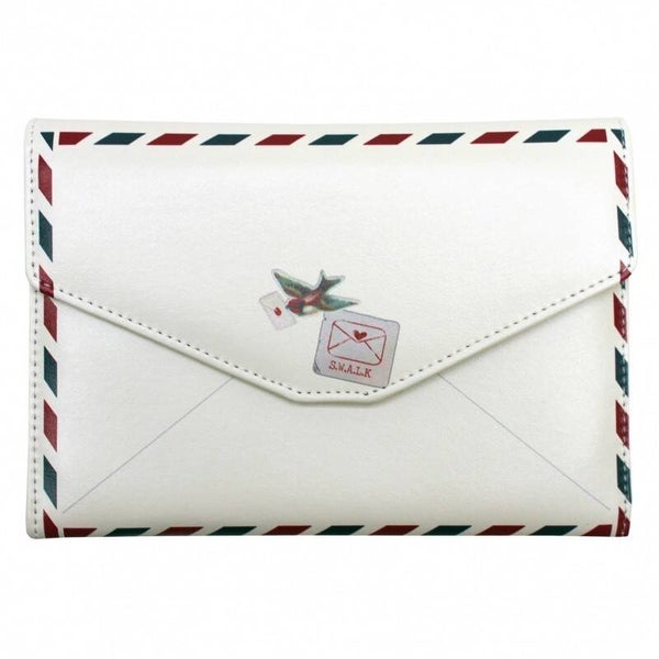 De postzegels aan de bovenkant geven de portemonnee een authentieke uitstraling, alsof het een echte brief is die vanuit het buitenland naar je toe komt.