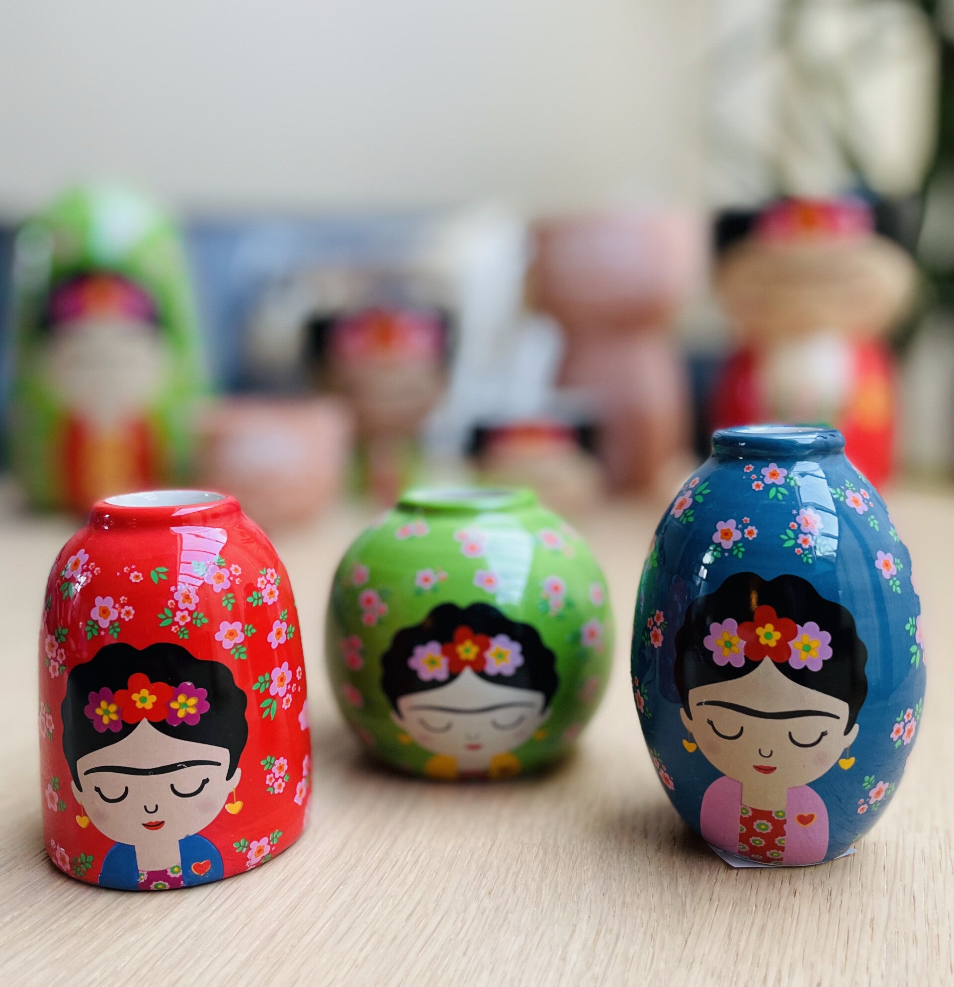 Set van drie prachtige vaasjes geïnspireerd op Frida Kahlo.