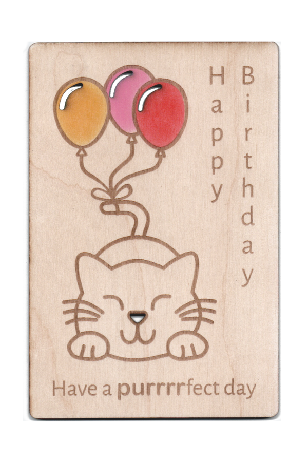 houten postkaartje Verjaardag Purrrrfect Day - houten kaartjes
