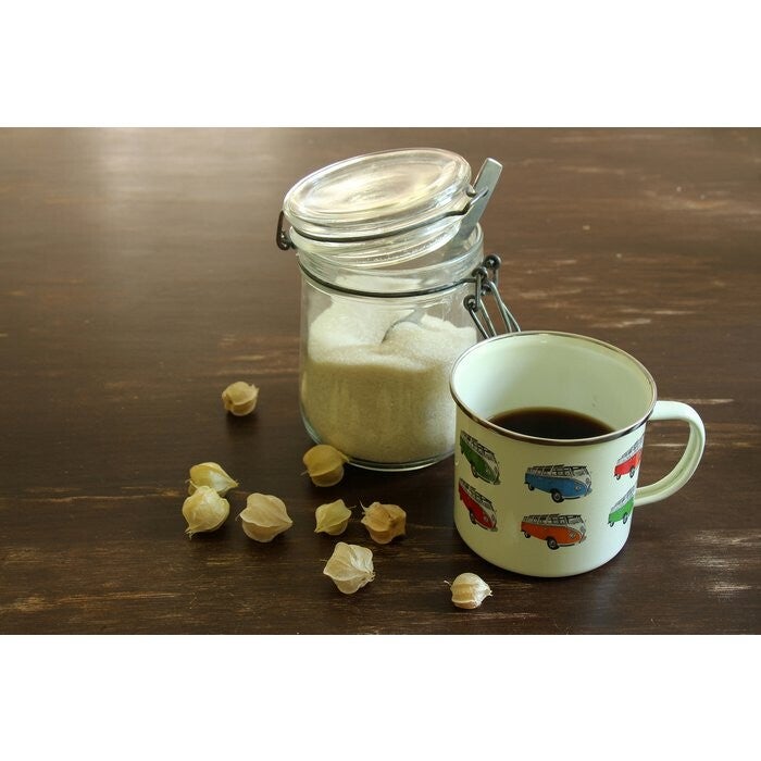 Niets zegt meer vintage dan deze geëmailleerde mok in retrostijl met zijn stevige vorm en creatief VW T1 Bus-ontwerp. De emaillaag zorgt ervoor dat het gemakkelijk te wassen en te onderhouden is. Geweldig voor kamperen of picknicken, elke mok is ook verpakt in een individuele geschenkdoos, waardoor hij perfect is om te geven!