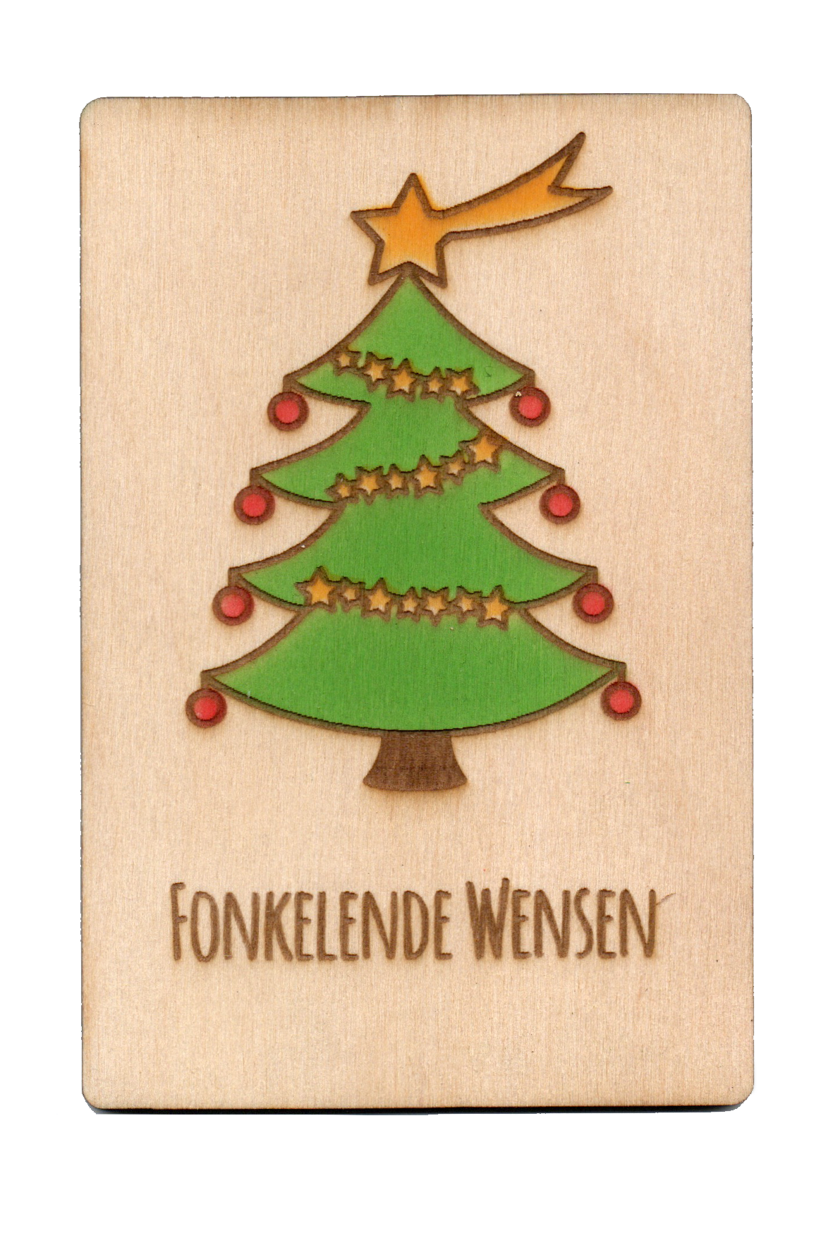 houten postkaartje Sprankelende Kerst - houten kaartjes
