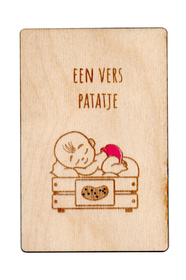 Originele handgemaakte kaartjes uit hout met een leuk kleuraccent. Op de achterkant kan je met een pen makkelijk een boodschap schrijven.